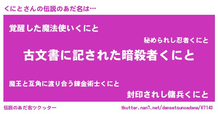 | 意味不明あだ名 | 『永久保存くにと』『ペロリンくにと』 |