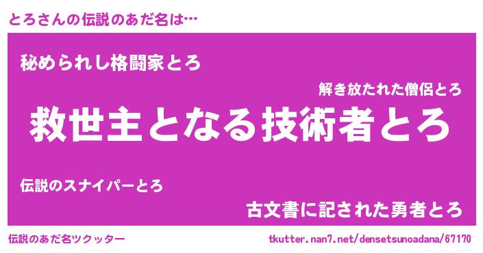 | ヒーロー風カッコイイあだ名 | 『天空の使者とろ』『超時空戦士トロ』 |