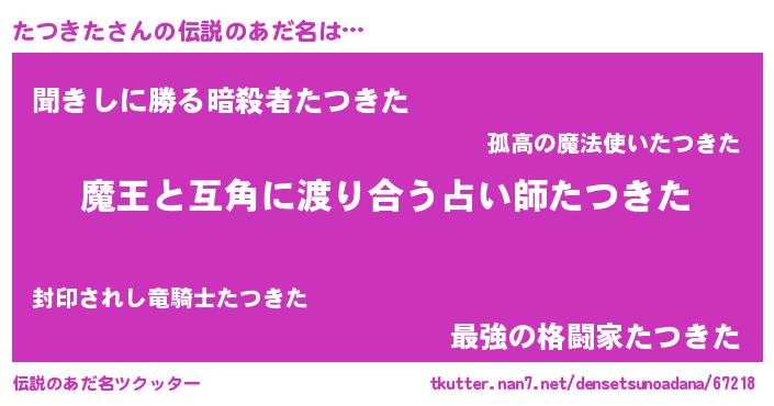 | ヒーロー風カッコイイあだ名 | 『愛の使者たつきた』『ネオタツキタ』 |