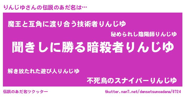 | 男性向けラノベタイトル風あだ名 | 『魔法科高校のりんじゆ』 |