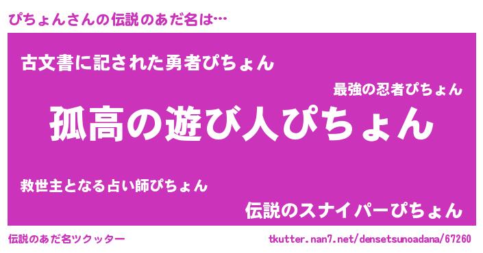 | ヒーロー風カッコイイあだ名 | 『黄金騎士ピチ』『ネオピチョン』 |