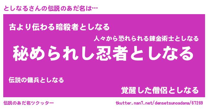 | 意味不明あだ名 | 『としなるフォーエバー』 |