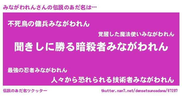 | 意味不明あだ名 | 『永久保存みながわれん』 |
