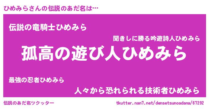 | 女子向けラノベタイトル風あだ名 | 『ひめみらは平凡を望む』 |