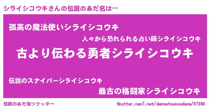 | 意味不明あだ名 | 『住所不定無職シライシコウキ(77歳)』 |