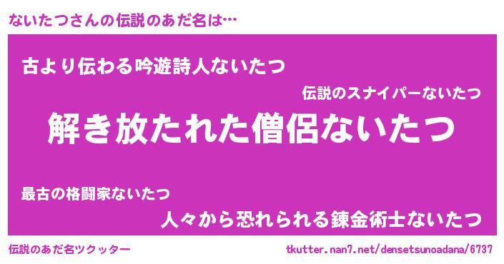 | 女子向けラノベタイトル風あだ名 | 『ないたつの卵を拾いまして』 |