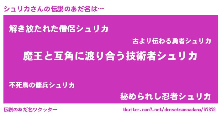 | ヒーロー風カッコイイあだ名 | 『友情の使者シュリカ』『幻影騎士シュ』 |