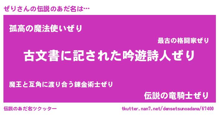 | 意味不明あだ名 | 『自称ぜり』『永久保存ぜり』 |
