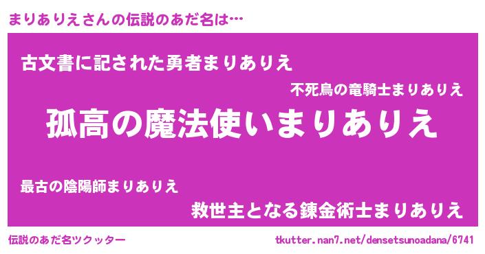 | 女子向けラノベタイトル風あだ名 | 『まりありえは平凡を望む』 |