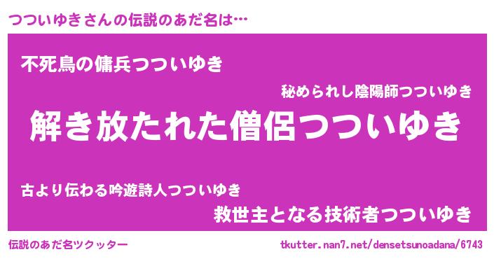 | 男性向けラノベタイトル風あだ名 | 『つついゆきの嫁は女の子じゃないと思った?』 |