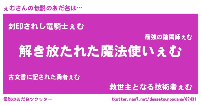 | ヒーロー風カッコイイあだ名 | 『魔戒騎士ェム』『スーパーェム』 |