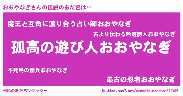 | ポケモン風あだ名 | 『ヒオオヤナギ』『オックウザ』 |