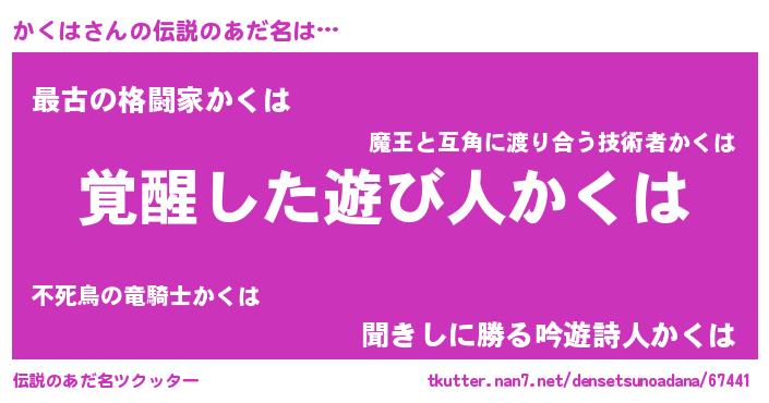 | 意味不明あだ名 | 『とにかく怪しいかくは』『自称かくは』 |