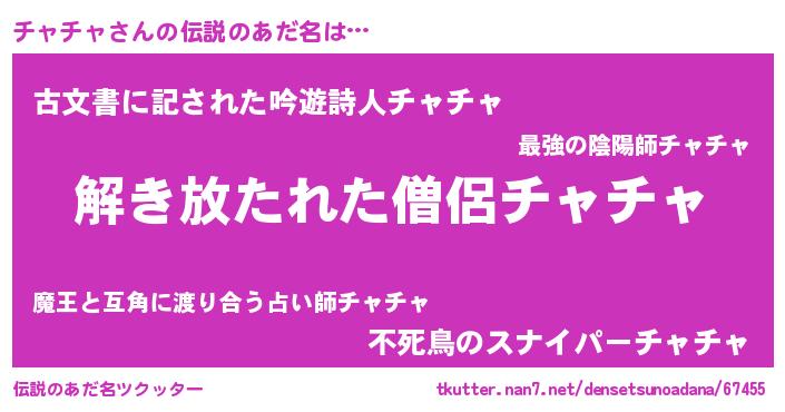 | 意味不明あだ名 | 『とにかく怪しいチャチャ』 |