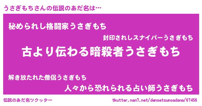 | ヒーロー風カッコイイあだ名 | 『ネオウサギモチ』『仮面ウサダー』 |