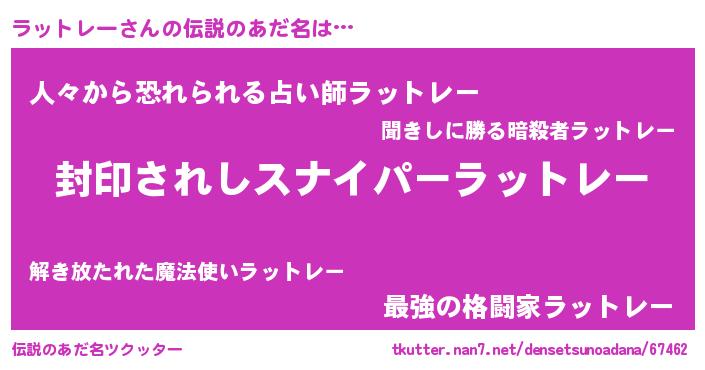 | 意味不明あだ名 | 『ペロリンラットレー』『自称ラットレー』 |