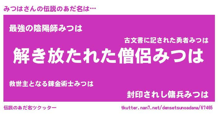 | 女子向けラノベタイトル風あだ名 | 『みつはの卵を拾いまして』『闇のみつは』 |