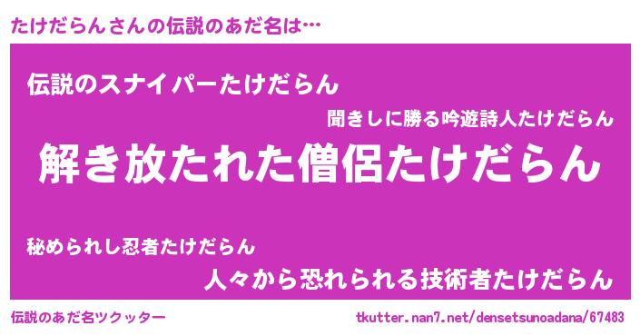 | ヘコむあだ名 | 『たけっ子』『たけもー』『つくし』 |