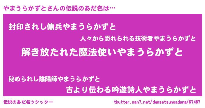 | 男性向けラノベタイトル風あだ名 | 『転生したらやまうらかずとだった件』 |