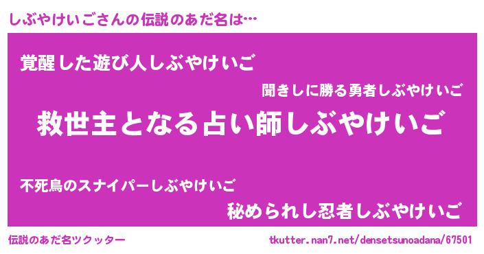 | ヒーロー風カッコイイあだ名 | 『天空の使者しぶやけいご』 |