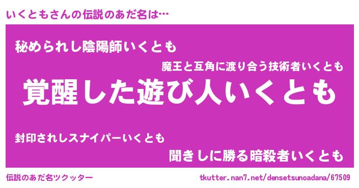 | 男性向けラノベタイトル風あだ名 | 『Re:いくともから始める異世界生活』 |