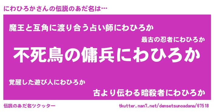| 意味不明あだ名 | 『ペロリンにわひろか』『自称にわひろか』 |
