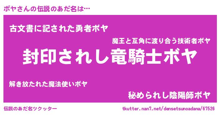 | 胡散臭い通販商品みたいなあだ名 | 『億万長者になれるブレスレット…その名も「ボヤ」』 |