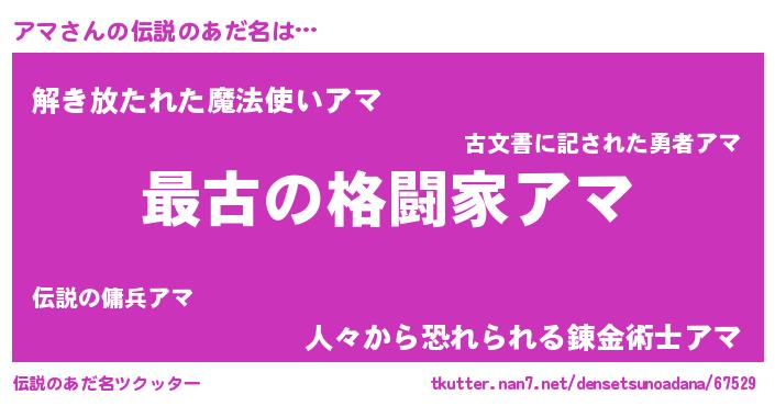 | ヒーロー風カッコイイあだ名 | 『サイバー戦士アマ』『ウルトラアママン』 |