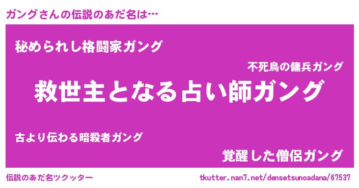 | 恥ずかしいあだ名 | 『ガングデラックス』『ガンっちょ』 |