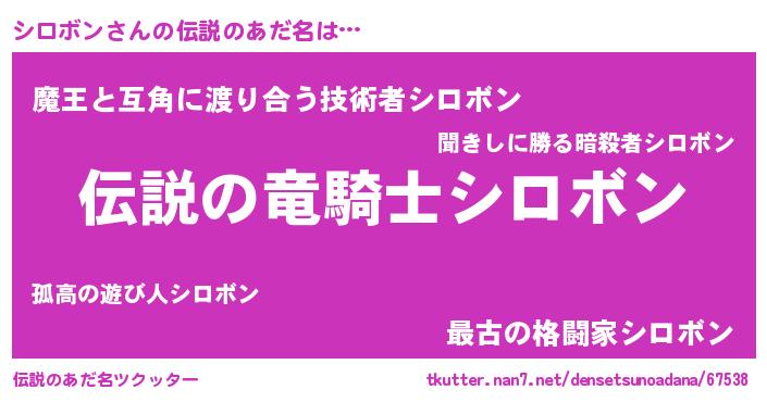 | 男性向けラノベタイトル風あだ名 | 『シロボンの憂鬱』『魔弾の王とシロボン』 |