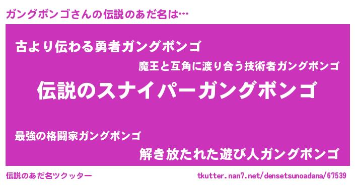 | 胡散臭い通販商品みたいなあだ名 | 『必ず成功する霊験あらたかなお札…その名も「ガングボンゴ」』 |