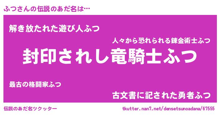 | ヒーロー風カッコイイあだ名 | 『スーパーフツ』『暗黒騎士フツ』 |