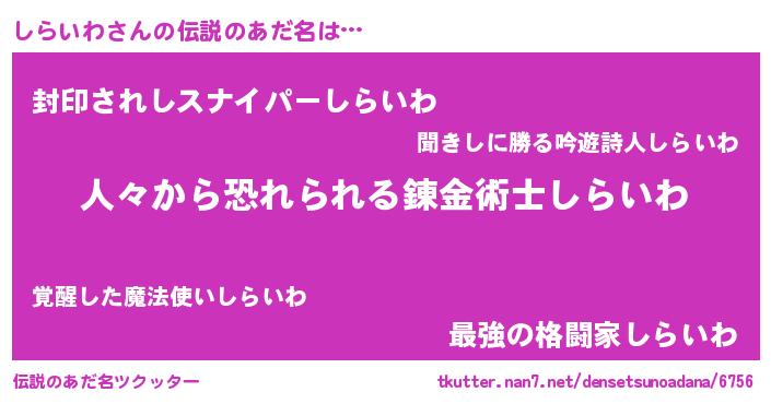 | 男性向けラノベタイトル風あだ名 | 『魔法科高校のしらいわ』 |