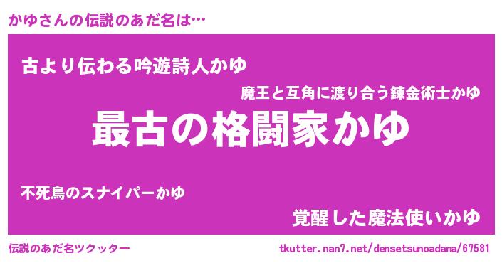 | ヒーロー風カッコイイあだ名 | 『ウルトラかゆマン』『ネオカユ』 |