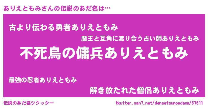 | ヘコむあだ名 | 『ありにゅー』『ありえともみ(遠い目)』 |