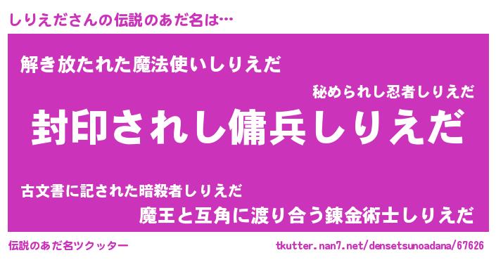 | 男性向けラノベタイトル風あだ名 | 『シリエダアートオンライン』 |