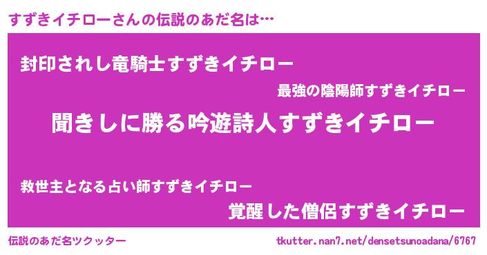 | ヒーロー風カッコイイあだ名 | 『ネオスズキイチロー』『天弓騎士スズ』 |
