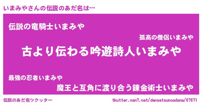 | 意味不明あだ名 | 『住所不定無職いまみや(9歳)』 |