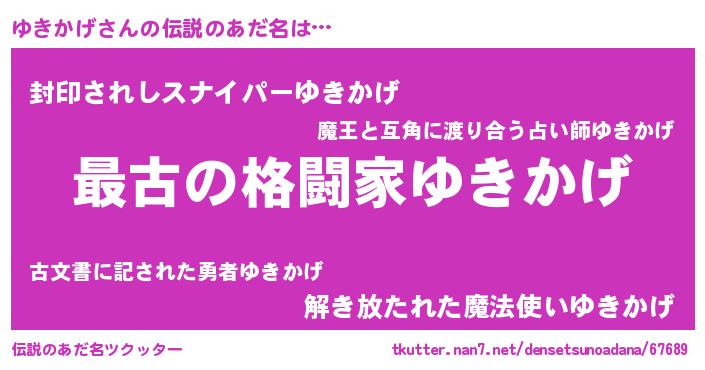| 意味不明あだ名 | 『ゆきかげフォーエバー』『自称ゆきかげ』 |
