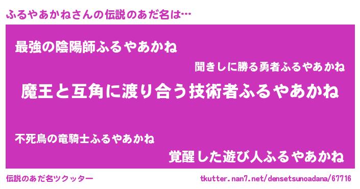 | 女子向けラノベタイトル風あだ名 | 『ふるやあかね恋絵巻』 |