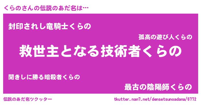 | ヒーロー風カッコイイあだ名 | 『天空の使者くらの』『スーパークラノ』 |