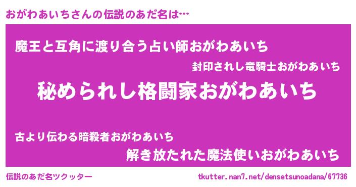 | 意味不明あだ名 | 『おがわあいちフォーエバー』 |