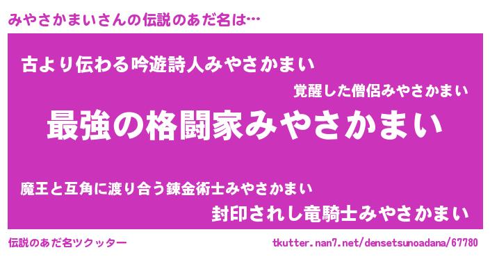 | 意味不明あだ名 | 『自称みやさかまい』 |