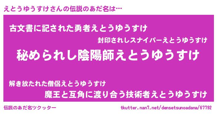 | 意味不明あだ名 | 『住所不定無職えとうゆうすけ(74歳)』 |
