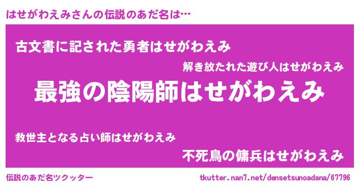 | 意味不明あだ名 | 『自称はせがわえみ』 |