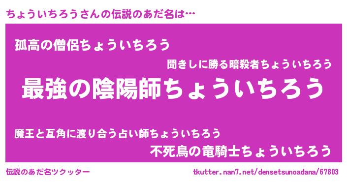 | ファンタジー風あだ名 | 『エターナルチョウイチロウー』 |
