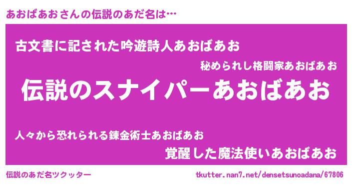 | 胡散臭い通販商品みたいなあだ名 | 『必ず成功する霊験あらたかなお札…その名も「あおばあお」』 |