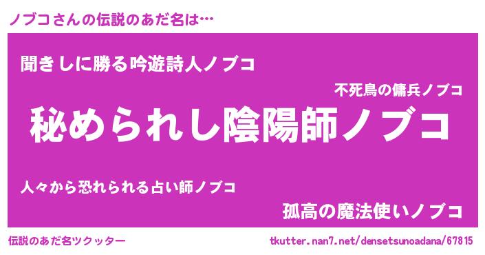 | ヘコむあだ名 | 『つくし』『ノブコ(笑)』『ノブを』 |