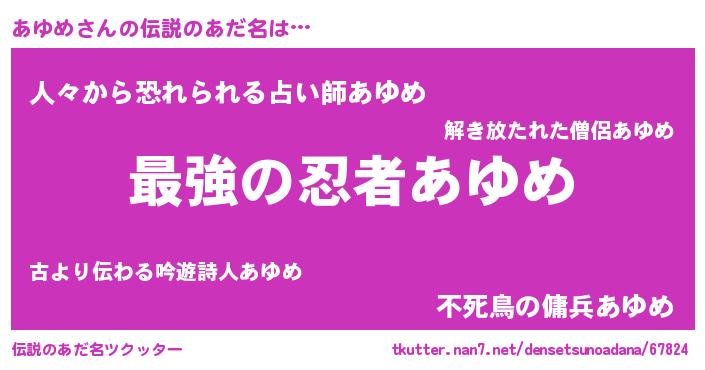 | 意味不明あだ名 | 『自称あゆめ』『住所不定無職あゆめ(14歳)』 |
