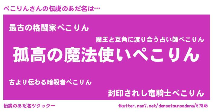 | 男性向けラノベタイトル風あだ名 | 『魔法科高校のぺこりん』 |